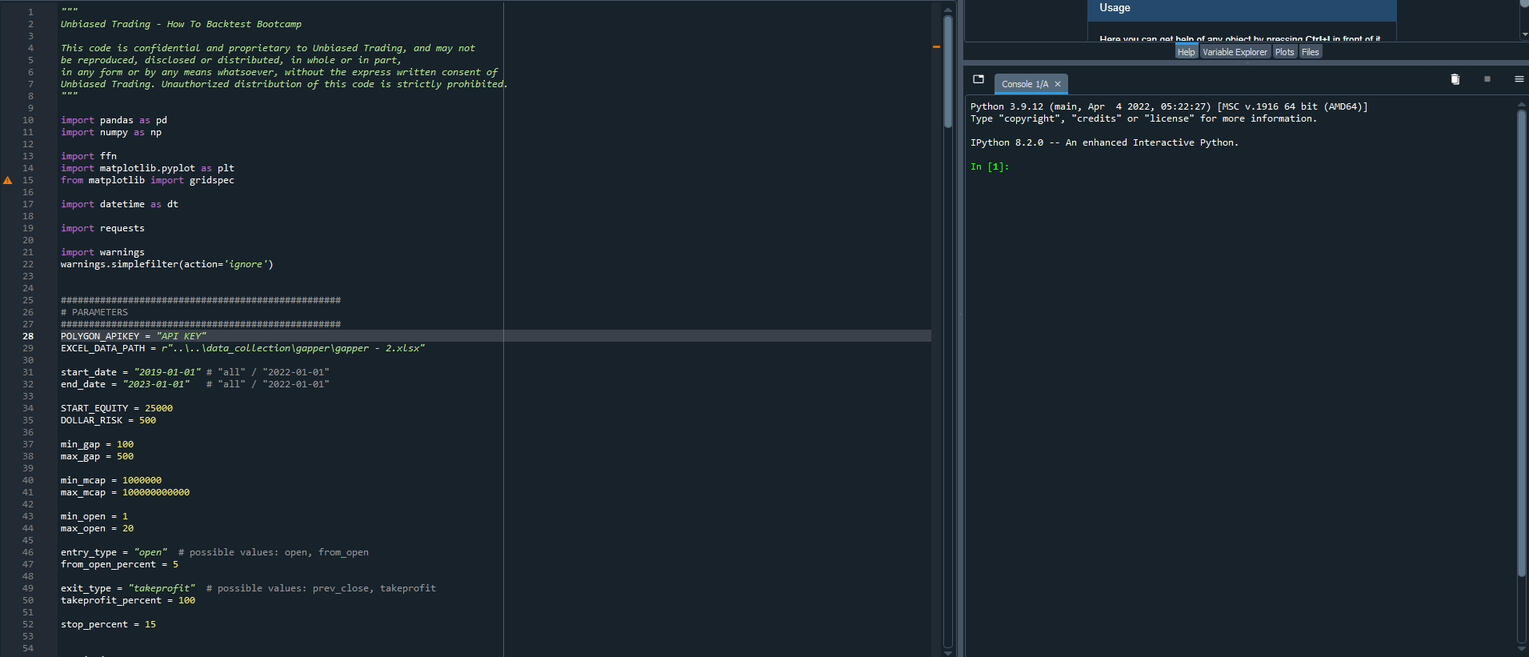 © UnbiasedTrading. All rights reserved.The information provided in the How To Backtest Bootcamp is for educational and informational purposes only. It does not constitute financial advice and should not be relied upon as such. The Bootcamp is not intended to provide specific financial or investment advice, and it is not a substitute for independent financial advice.The Bootcamp is not tailored to the specific circumstances of any individual or entity, and the information provided may not be suitable for your particular needs or circumstances. Any decisions you make based on the information provided in the Bootcamp are made at your own risk.The Bootcamp is provided without any warranties or representations, express or implied, including but not limited to warranties of merchantability, fitness for a particular purpose, or non-infringement of intellectual property.